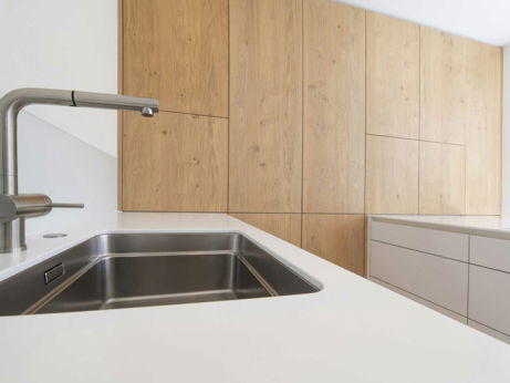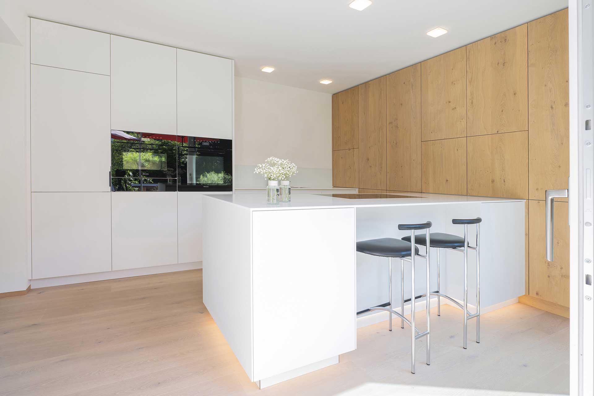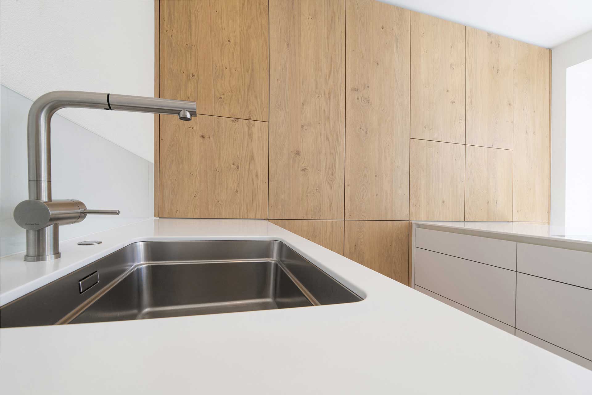 Bei Projekten mit zu vielen Sondermaßen oder Individuallösungen haben wir die Erfahrung gemacht, dass es für unsere Kunden kostengünstiger ist, wenn wir die Küche in unserer Tischlerei anfertigen. Die Küchenindustrie ist für solche Projekte nicht eingerichtet und kann durch Aufpreise für Sonderanfertigungen nicht mehr konkurrenzfähig anbieten. Durch unsere Erfahrungen in der Planung und Anfertigung von Maßmöbeln können wir Ihnen im Bereich der Küche ein Tischlermöbel anbieten, das preiswert und für Generationen gemacht ist.